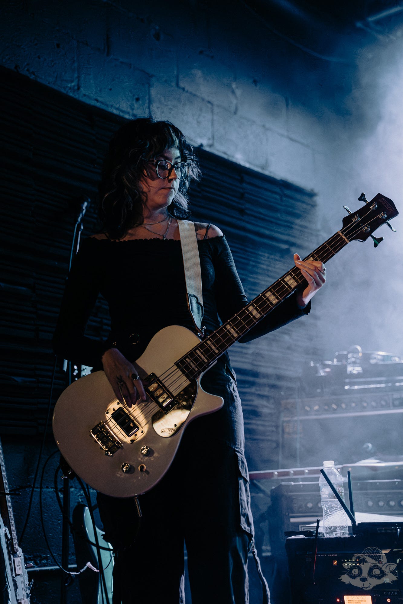 Angela Colvin also joined in 2022, on bass. She is my younger sister and played a slew of instruments in high school marching band, eventually making her way to upright bass (despite being like 5 foot nothin) and finally electric bass in jazz band. The festival show was the first she had ever played with us or any band. Angela’s main interests and activities outside of the band are birding, fashion, her cat Meep, and spending time with her partner Charlie. Who coincidentally…