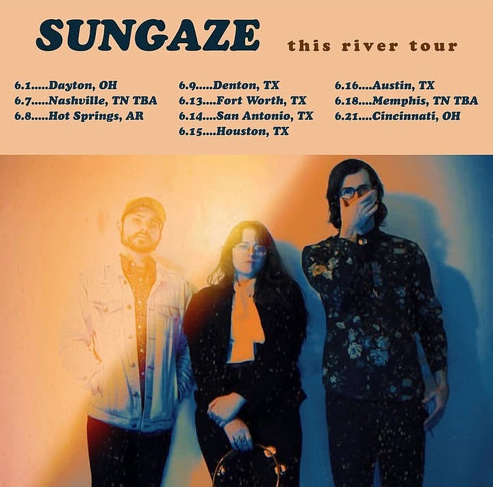 Ian later started Sungaze after leaving his long-time metal band, Fenrir; he was very into Tame Impala and Washed Out, and that’s kinda the vibe this project had in its early days. He wrote all the music alone in our bedroom and then recruited a few coworkers (thanks Whole Foods) to flesh out the first iterations of the live band.