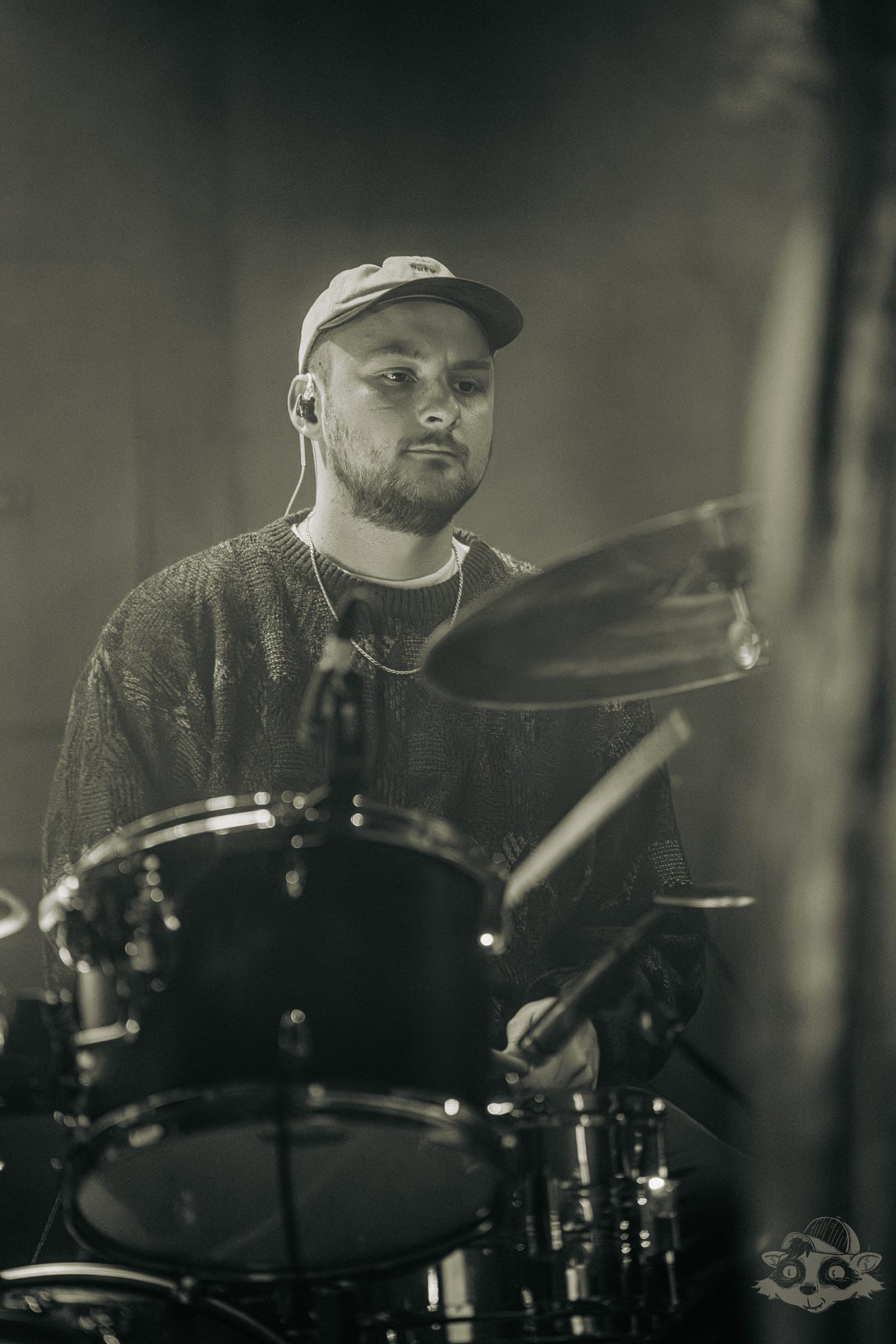 Our final introduction is our newest member, and friend, Tyler Collier. Tyler may be the most fashionable of us all, has the best sense of humor, and is such a peaceful energy to be around. Outside of music, he spends his time as a chef, a dog dad, and with his girlfriend Maeve, an honorary member of this band. Charlie and Tyler have been friends for years and when we found ourselves in need of a drummer this past summer, it was an easy recommendation. It ended up being the perfect fit in so many ways.
